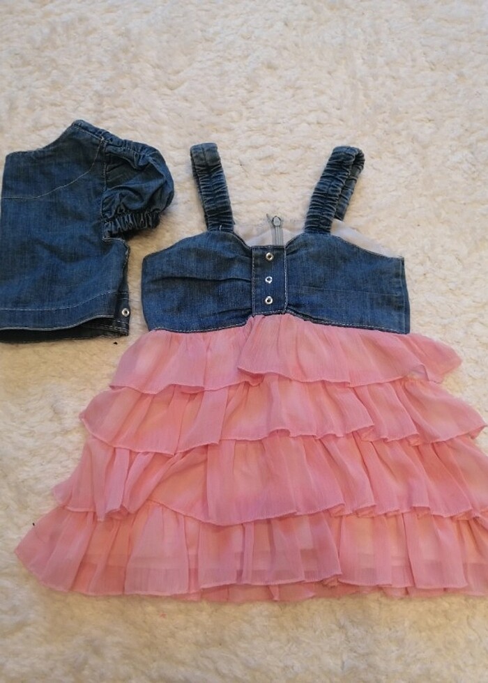 Kız çocuk kot elbise seti