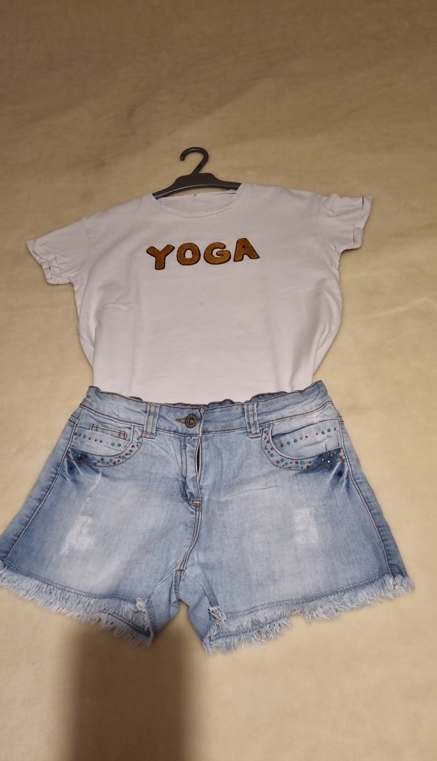 Rahat , açık renk batik desenli kot şort, püsküllü kenarları ve taşlı. Üzerinde 'YOGA' yazılı beyaz tişörtle kombinlenmiştir. tişört LC Waikiki markadır ancak etiketi kesiktir şortumu etiketi fotoğraflarda mevcuttur. seçilen marka lcw. ölçüler fotoğraflarda mevcuttur Lütfen dikkate alarak alım yapınız iade kabul etmiyorum. delik Sökük leke gibi durumlar yoktur .Sadece Şortun arka kısmında fotoğraflarda da görünen bazı taşlar eksiktir