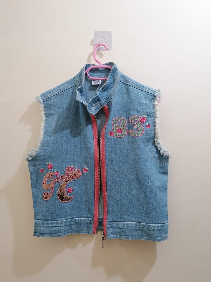 Renkli nakışlı, mavi kot kumaştan yapılmış, fermuarlı ve kolsuz, straplez yaka kız yeleği. Trend sokak stili için uygun, vücuda oturan kesim.Hiç kullanılmadı tertemiz ve sağlam bir kot yelek ceket. Etiketini kızım kesmiş. Yıllar önce almıştım ama ihtiyaç fazlası olduğundan hiç giyilmedi. Rengi ve görüntüsü aldığım gibi duruyor. Burada satmıyorum. Yaşı yazmıyor ama 10-11-12-13 yaşlara uyumludur. Ölçülerine dikkat ediniz.