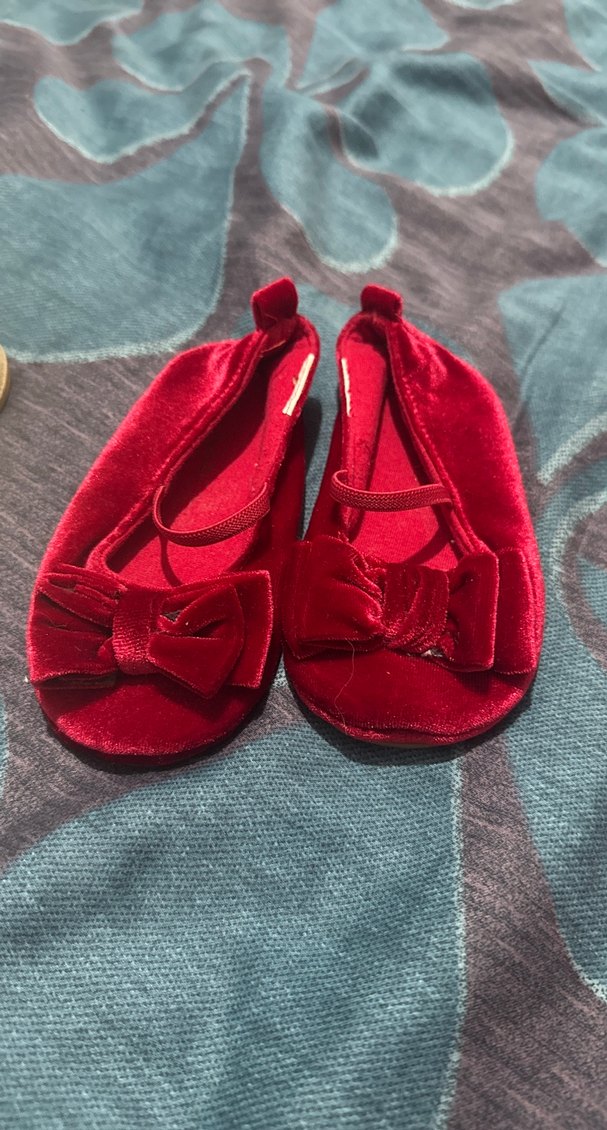 Koyu kırmızı renkte, fiyonklu kız çocuk babetleri, yumuşak kauçuk materyalden üretilmiştir. Desensiz ve sade tasarıma sahiptir.