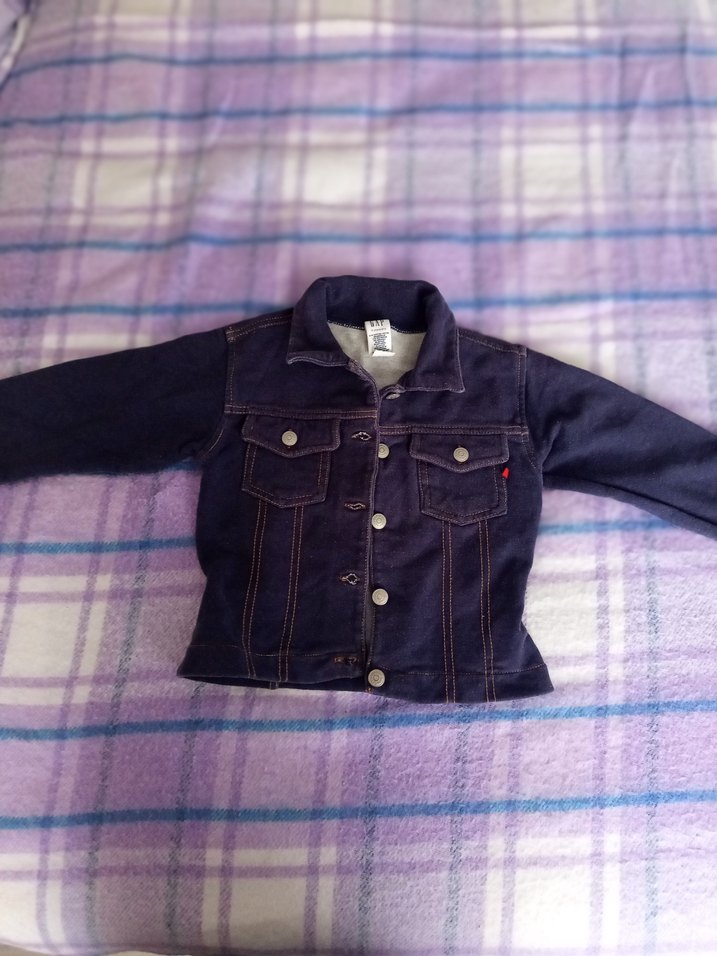 Koyu mavi renkte, düğmeli ön ve kesik yaka detaylı, kız çocuklar için fitted denim ceket. Trendy ve rahat sokak stili için uygundur.