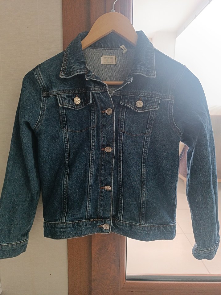 Koyu mavi, düğmeli, uzun kollu, yakalı ve dar kesim kız çocuk denim ceket. Günlük kullanıma uygun rahat bir sokak stili parçası. 11-12 yaş