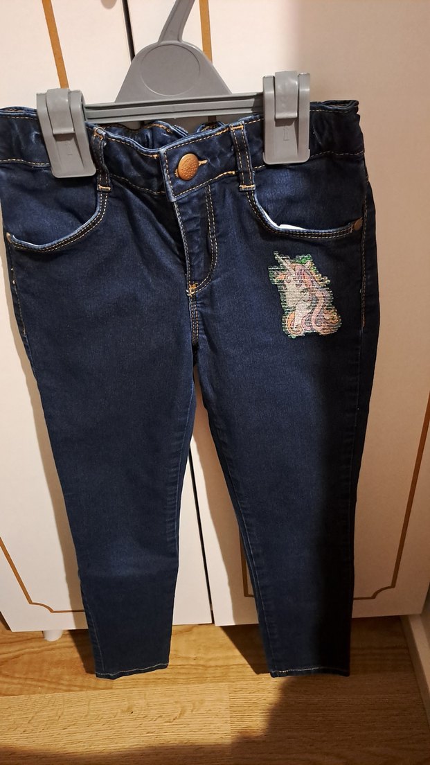 Kız Çocuk Koyu Mavi Nakışlı Kot Pantolon