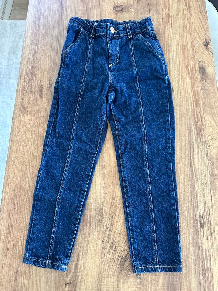 Kız çocuk Koyu Mavi Pileli Denim Pantolon