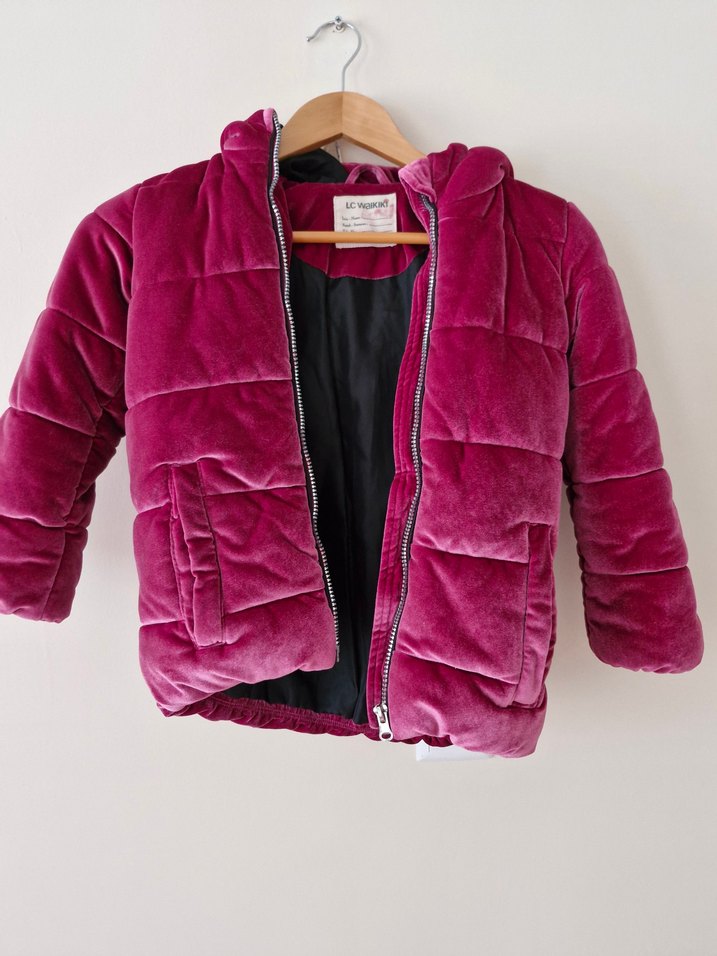 Koyu pembe fermuarlı bu ceket, kesimli yakaya ve rahat bir uyuma sahiptir. Yumuşak, sıcak kumaştan üretilmiş sokak tarzı kız çocuk ceketi.