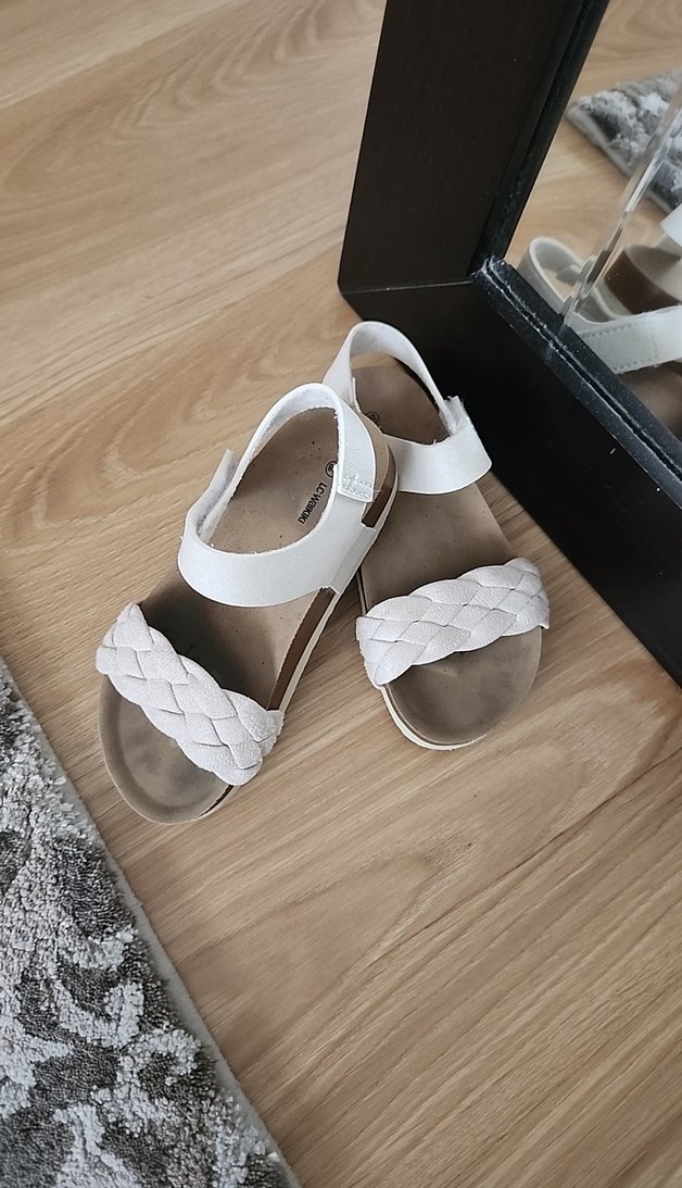 Kız çocukları için krem sandalet, örgülü ön bant ve rahat kullanım için kauçuk malzemeden üretilmiştir. 28 numara