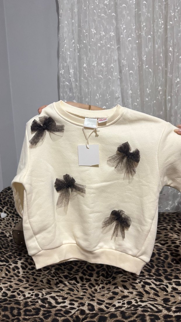 Kız Çocuk krem Sweatshirt Fiyonk Detaylı