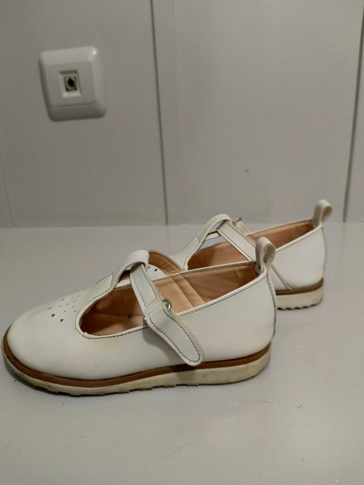 Krem renkli, tokalı, kauçuk malzemeden kız çocuk babet ayakkabısı. Modern klasik tarza sahip, desensiz ve pastel görünümlü.