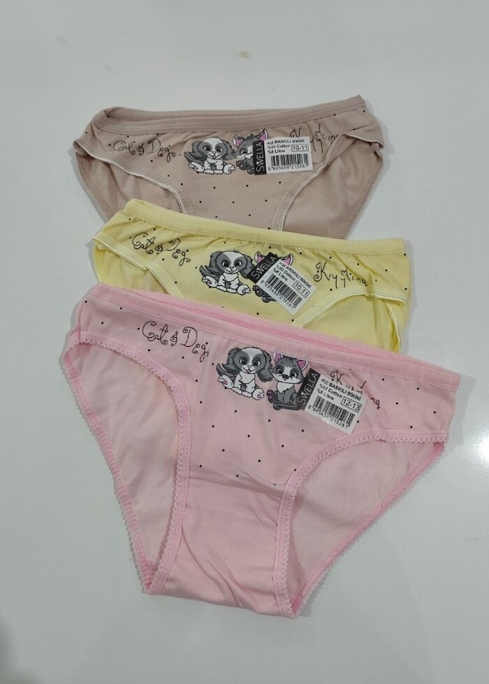 Kız çocuk külot üç adet Yaş: 5-6-7-8-9-10-11-12-13-14