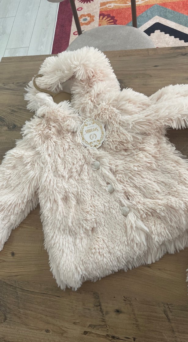 Sıfır etiketli ürün 5-6 yaş var elimde içi astarlı kürk kapşpnlu inci düğmeli