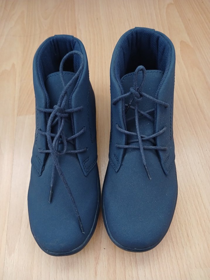 Kız çocuklar için lacivert, bağcıklı ve düz tasarımlı özel ayakkabılar. Kauçuk tabanlı, sade ve şık bir görünüm sunar. Yenidir hic giyilmedi
