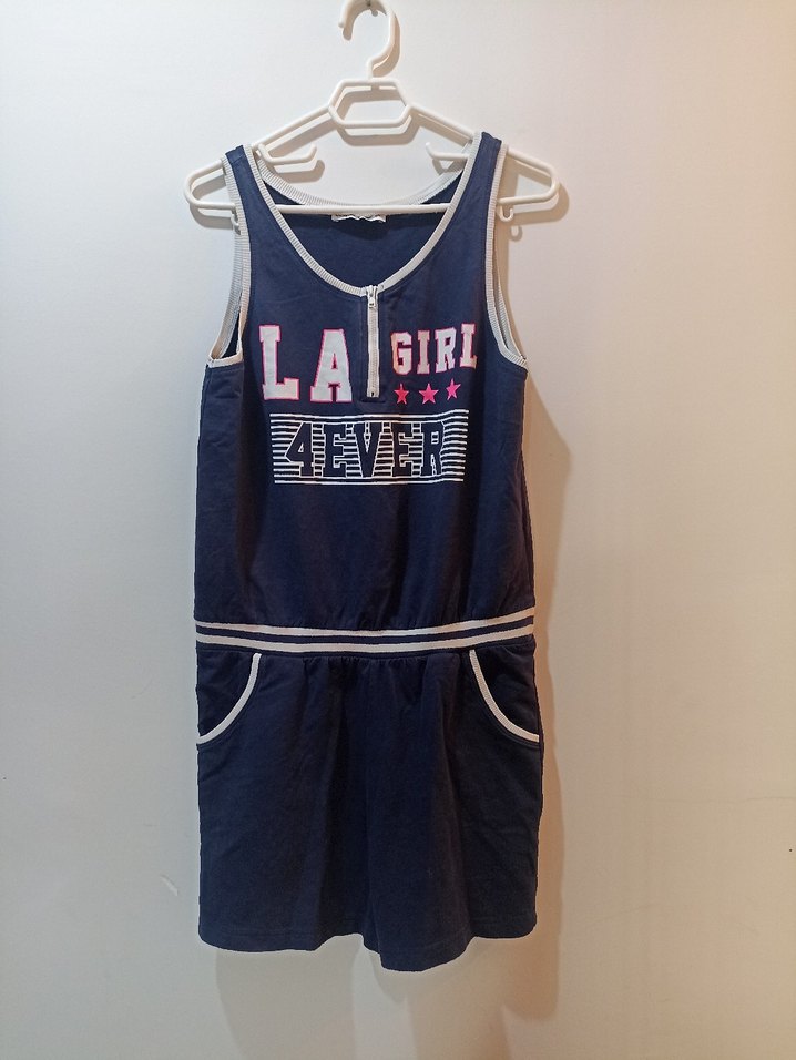 Kız Çocuk Lacivert Baskılı Fermuarlı Elbise