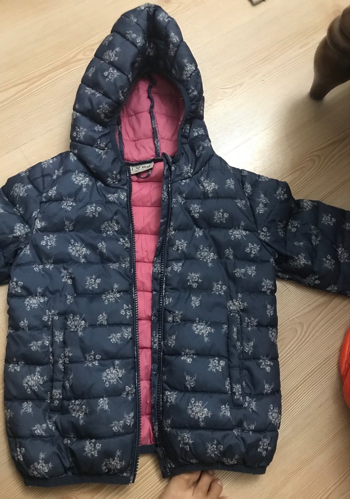 Kız Çocuk Lacivert Baskılı Kapüşonlu Mont