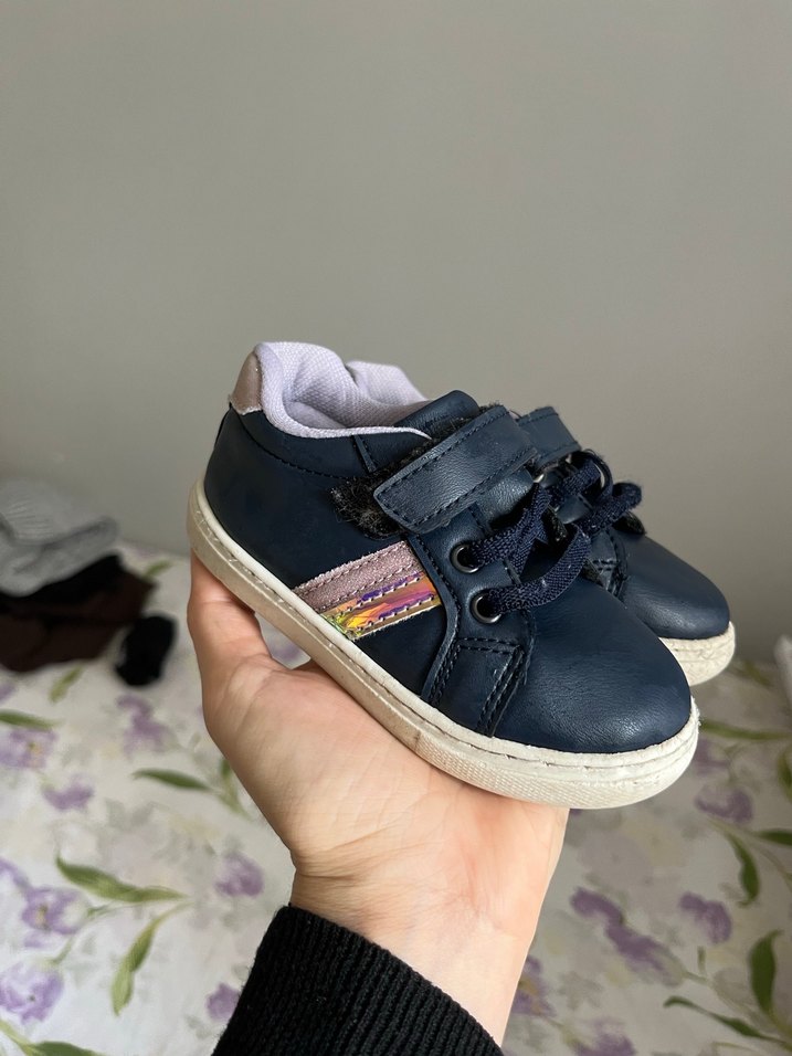 Koyu lacivert renkli, bağcıklı ve cırt cırtlı kız çocuk spor ayakkabısı. Kauçuk tabanlı, sokak stili ve rahat kullanıma uygun.