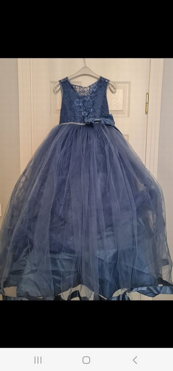 Kız Çocuk Lacivert Dantel Nakışlı Abiye Elbise