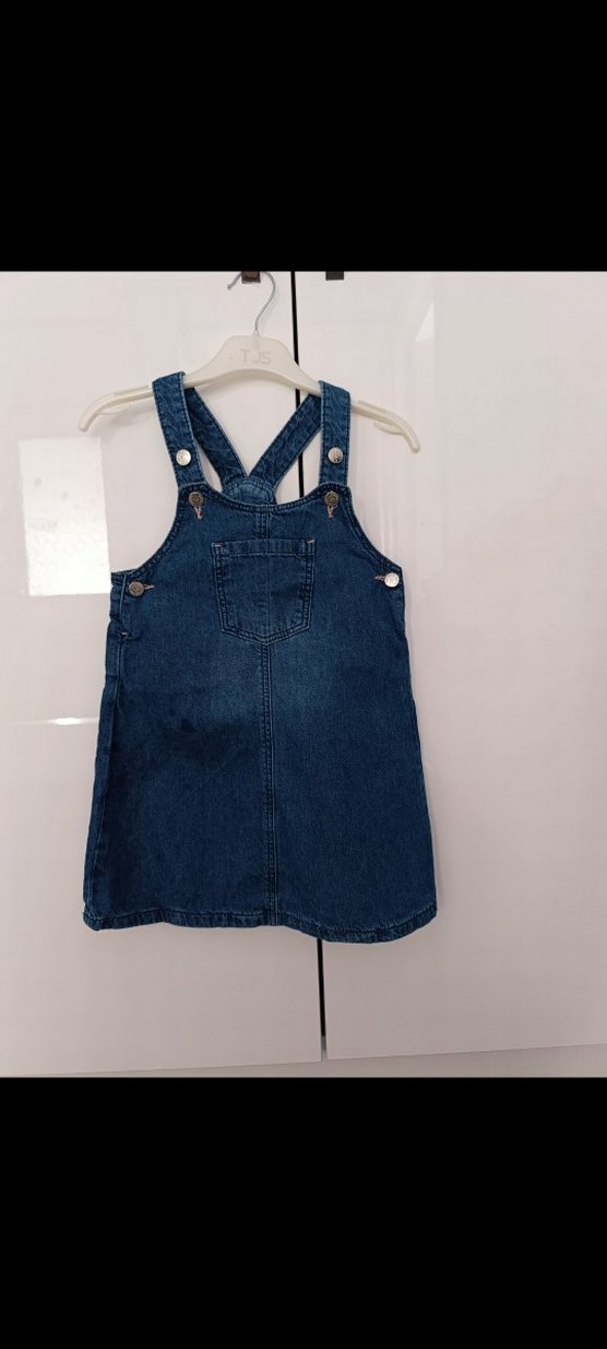 Lacivert denimden, kolsuz ve dar kesimli, tokalı askılara sahip kız çocuk elbisesi. Önünde cep ve yuvarlak yaka bulunur. Trend sokak stili için uygun. 4-5 yaş