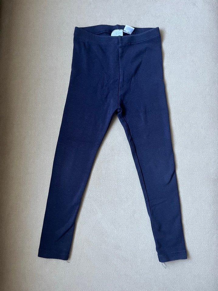 Koyu mavi, elastik bel bantlı, kot kumaştan yapılmış kız çocuk taytı. Düz ve temel tarzda, günlük kullanıma uygun.