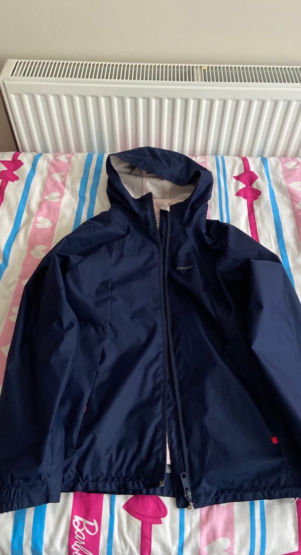 Kız çocuk için fermuarlı, yüksek yakalı, uzun kollu, lacivert renkli yağmurluktur. Sentetik kumaştan yapılmıştır, günlük kullanıma uygundur. ️