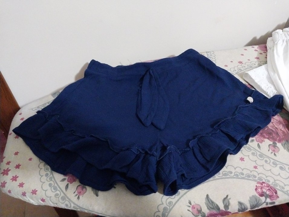 Kız çocukları için yumuşak ve sıcak dokulu, lacivert renkte, fırfırlı detaylı bol kesim şort. Desensiz ve rahat.birkez giyildi