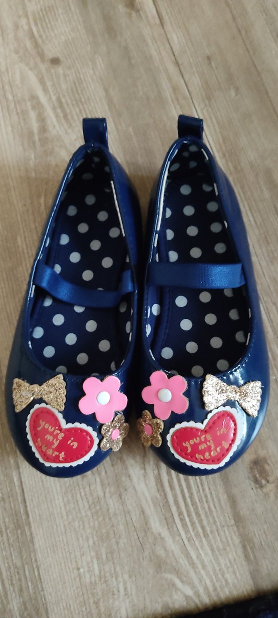 Kız çocukları için renkli lacivert babetler, fiyonk ve eğlenceli baskılı detaylara sahip. Rahat ve dayanıklı kauçuk malzemeden üretilmiştir.