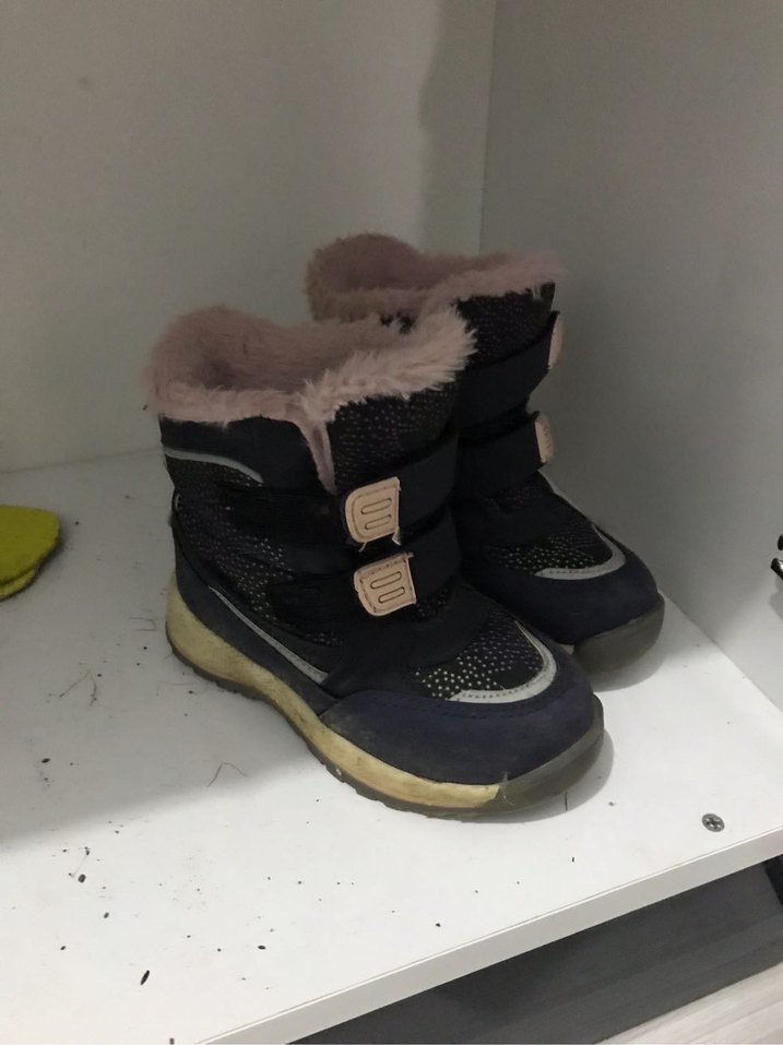 Kız çocukları için lacivert renkte, kürklü detaylı kar botu