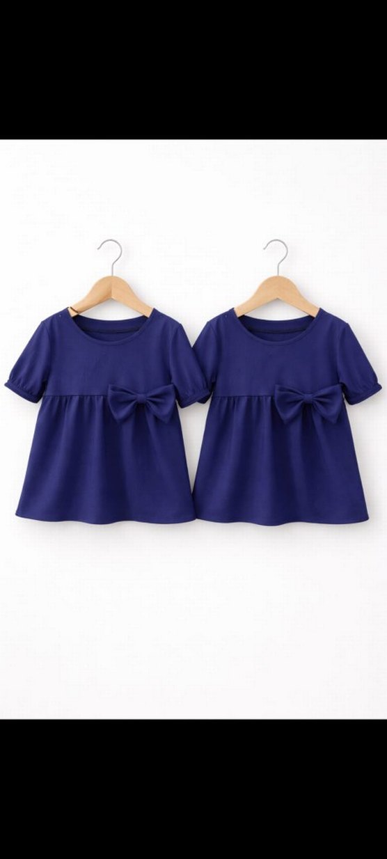 Kız çocukları için kısa kollu, yuvarlak yakalı, bol kesim lacivert elbise. Fiyonk detayı ve penye kumaştan üretilmiştir. ( kendim dikiyorum)