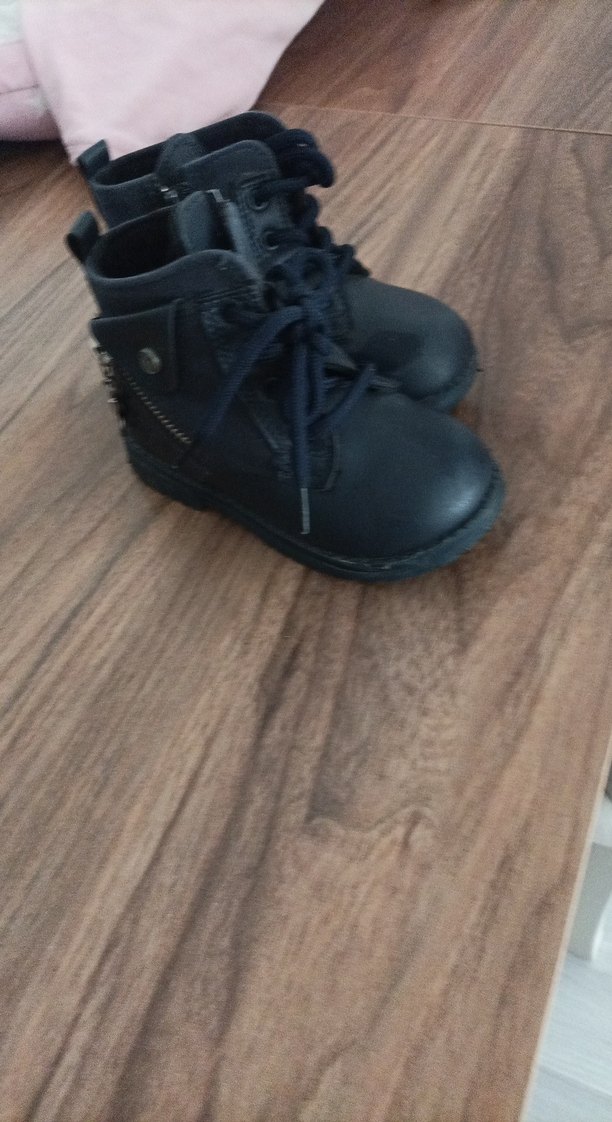 Kız ve erkek çocukları için lacivert lastik goth botlar, tokalı ve bağcıklı, rock punk tarzına uygun. Desensiz ve koyu renkte.