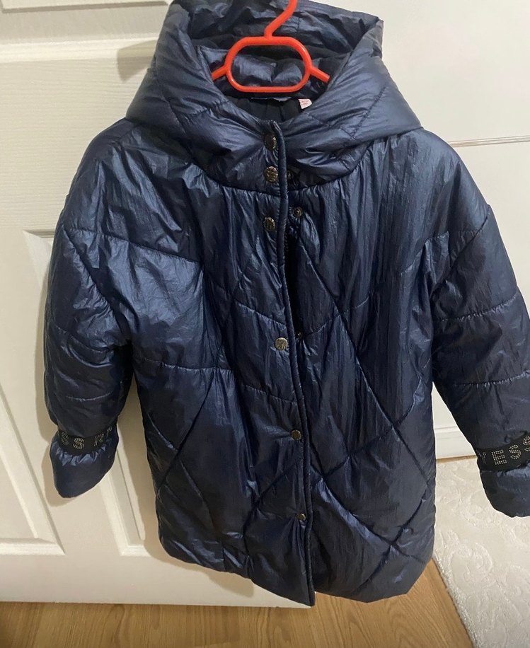 Çocuklar için lacivert, düğmeli, normal boy midi kaban. Sentetik kumaştan, kesimi vücuda oturan ve notalı yaka detaylı, rahat ve şık sokak stili.