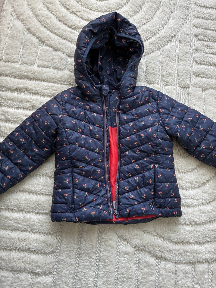Kız çocukları için lacivert renkte, nakışlı ve fermuarlı, yumuşak fleece kumaştan üretilmiş, dar kesim mont. Sokak modasına uygun, şık ve rahat. Yurt dışı üründür sadece sol omuzun orada dikişlerde sökülme oldu