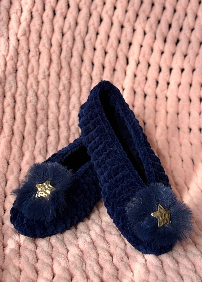 Kız çocukları için lacivert renkli, örgü yapıda ve ön kısmında yıldız süslemeli sıcak ev terliği. Bohem tarzıyla renkli ve sade bir şıklık sunar. 36-37 numara uyumlu