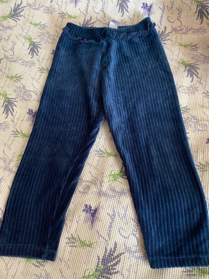 Lacivert renkte pileli denim kumaştan yapılmış, bol kesim kız çocuk taytı, rahat ve gündelik normcore tarzda. Kadife kumaş yurtdışı ürün
