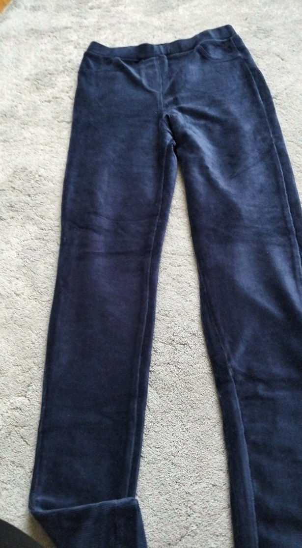 Lacivert ve gri tonlarında, süet kumaştan yapılmış, dar kesim kız çocuk pantolonu, sade ve normcore tarzıyla zahmetsiz şıklık sunar.