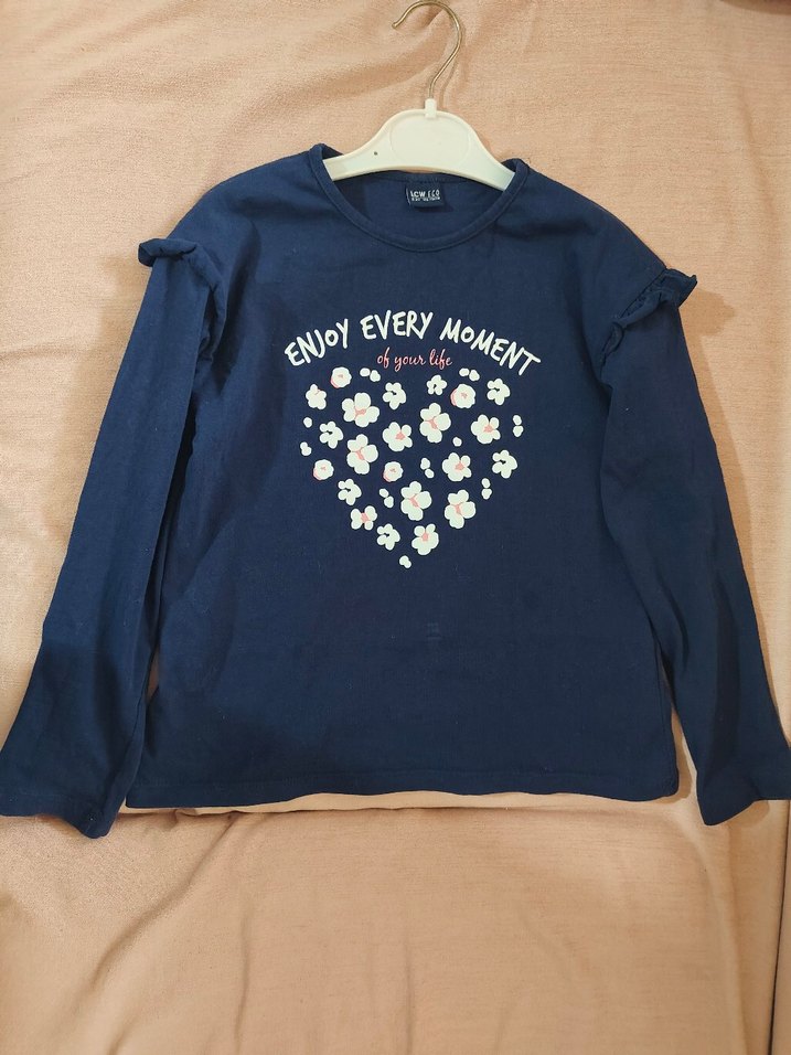 Kız Çocuk Lacivert Uzun Kollu Baskılı Tişört
