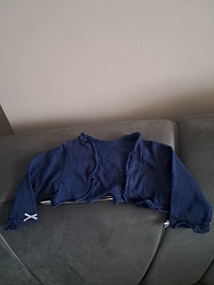 Kız çocukları için uzun kollu, yumuşak ve sıcak kumaşlı, askısız yakalı ve kemerli lacivert bolero.