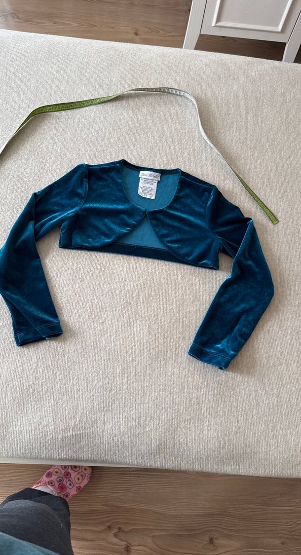 Kız çocukları için lacivert renkli, uzun kollu, V yakalı ve kemerli, yumuşak ve sıcak dokulu dar kesim bolero.elbisenin yanında takımdı hiç kullanılmadı