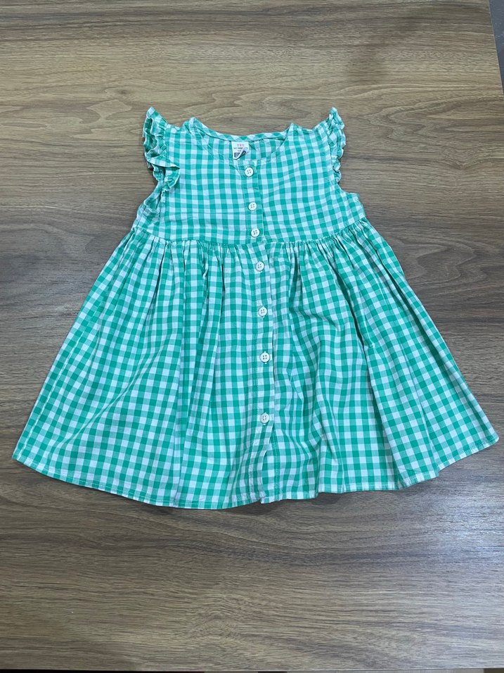 Kız çocuklar için düğmeli, yeşil kareli, pamuklu ve bol kesim bohem tarzda kolsuz elbise. Hiç bir sorunu yok. Sadece anne kız kombini yapmak için giyildi. Lekesiz tertemiz