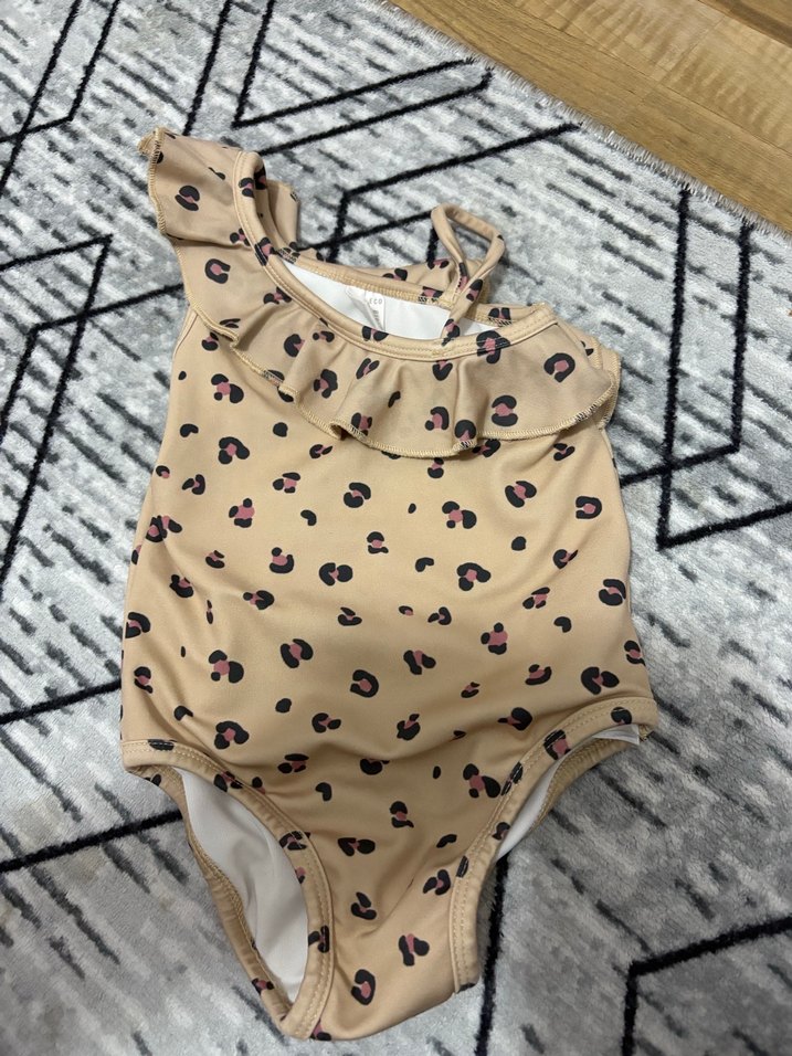 Kız Çocuk Leopar Desenli Askılı Mayo