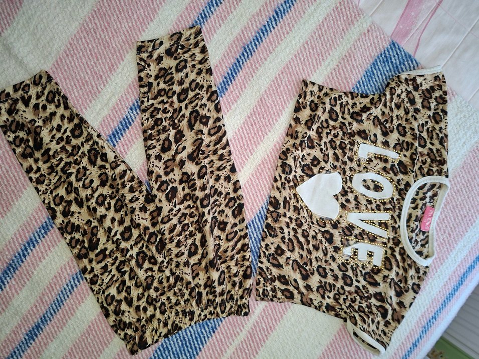 Kız Çocuk Leopar Desenli Dantelli Tayt Crop Takım