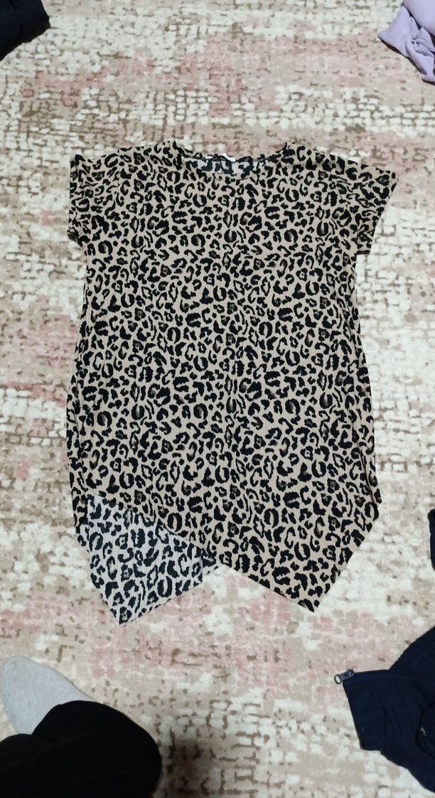 Kız Çocuk Leopar Desenli Kısa Kollu Panço