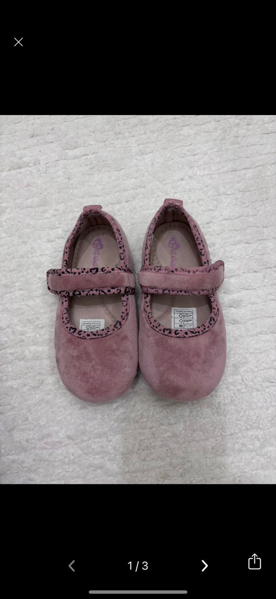 Kız çocukları için pastel pembe süet, leopar desenli kenar ve tokalı bantlı babetler. Günlük sokak stili için uygundur.