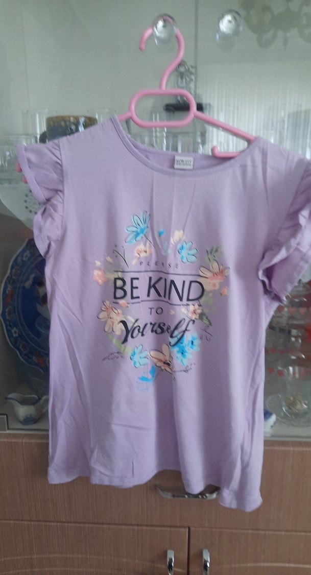 Kız Çocuk Lila Baskılı Kısa Kollu Tişört
