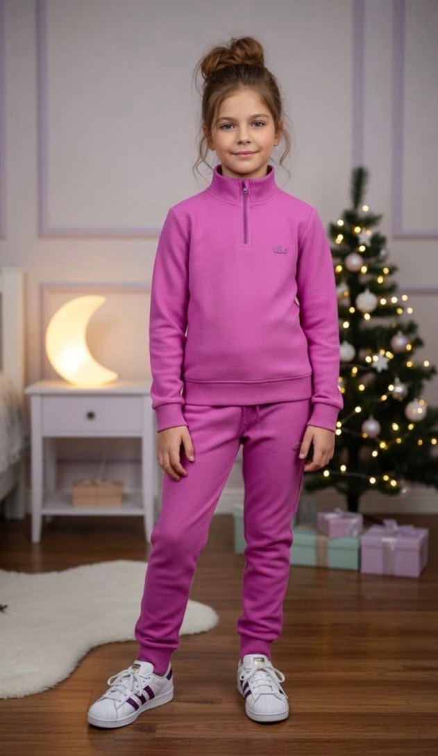 Kız Çocuk lila Fermuarlı Yarım Boğazlı Eşofman