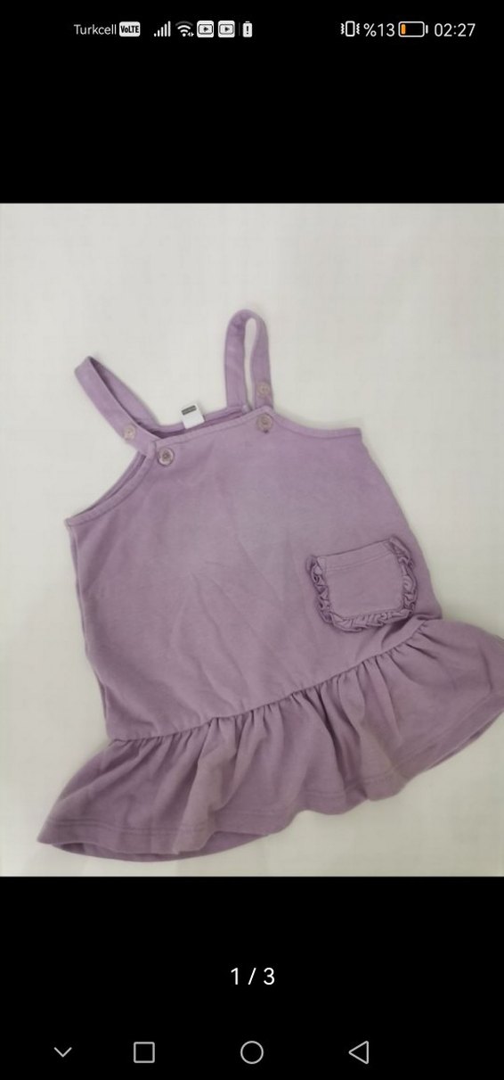 Kolsuz, bol kesim ve yuvarlak yakalı bu kız çocuk elbisesi yumuşak ve sıcak kumaştan üretilmiştir. Lila pastel renk ve etek ucu ile cepte fırfır detayı bulunur.