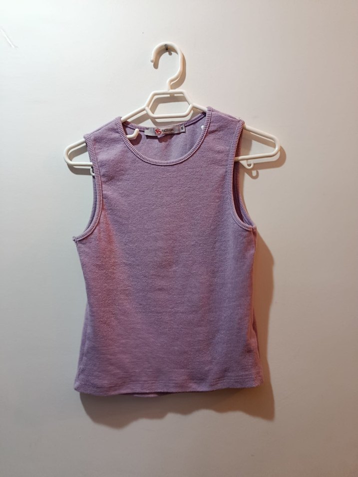 Yumuşak, kolsuz ve bisiklet yaka, pastel lila renkte dar kesim kız çocuk body.