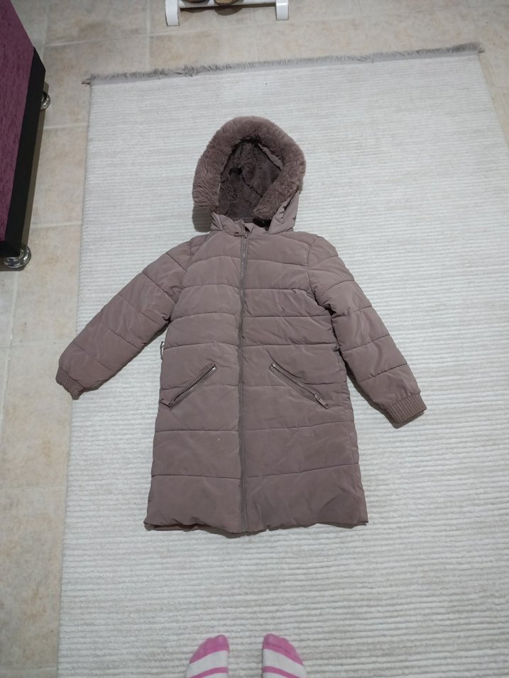 Kız Çocuk lila Kürklü Kapüşonlu Mont