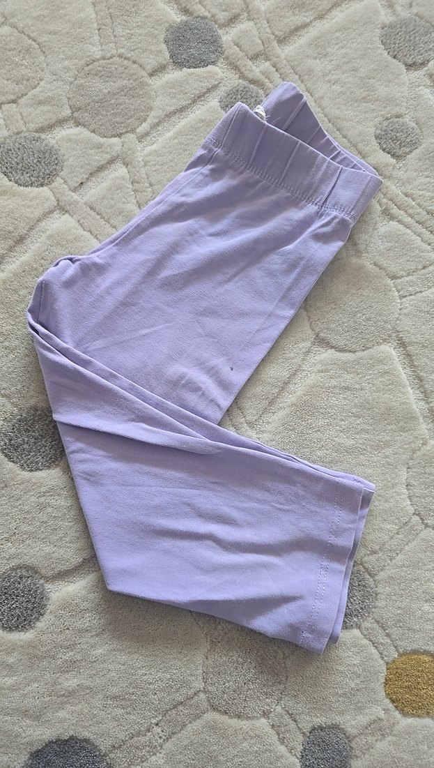 Pamuklu kumaştan yapılmış, sade ve normcore tarzda, rahat kesimli lila renk kız çocuk taytı. Günlük kullanıma uygundur.