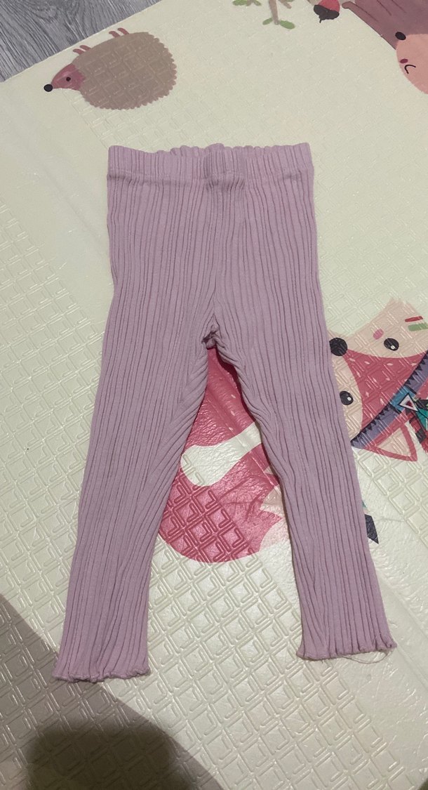 Kız çocukları için lila renkli, pilili ve triko kumaştan yapılmış, vücuda oturan tayt. Trendy ve rahat bir görünüm sağlar.