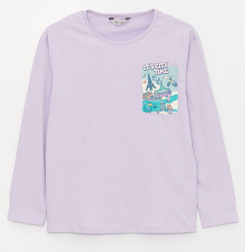 Kız Çocuk Lila Uzun Kollu Bisiklet Yaka Baskılı Tişört 10-11 yaş