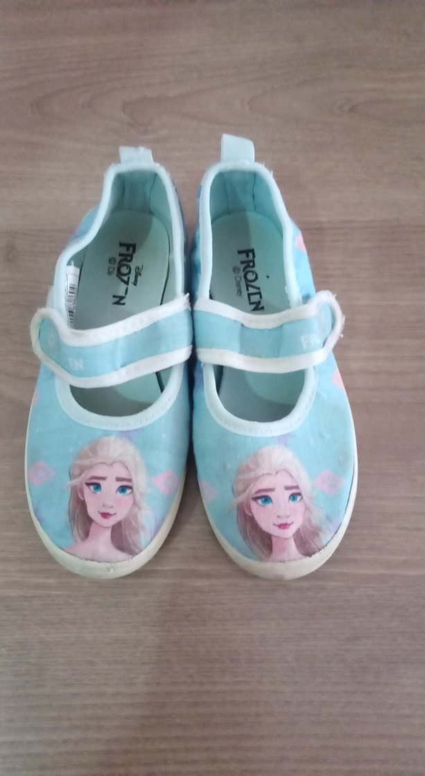 Pastel mavi renkte, Frozen baskılı kız çocuk babet ayakkabılar. Kauçuk malzeme ve tokalı bant ile trendy sokak stiline uygun. ❄️