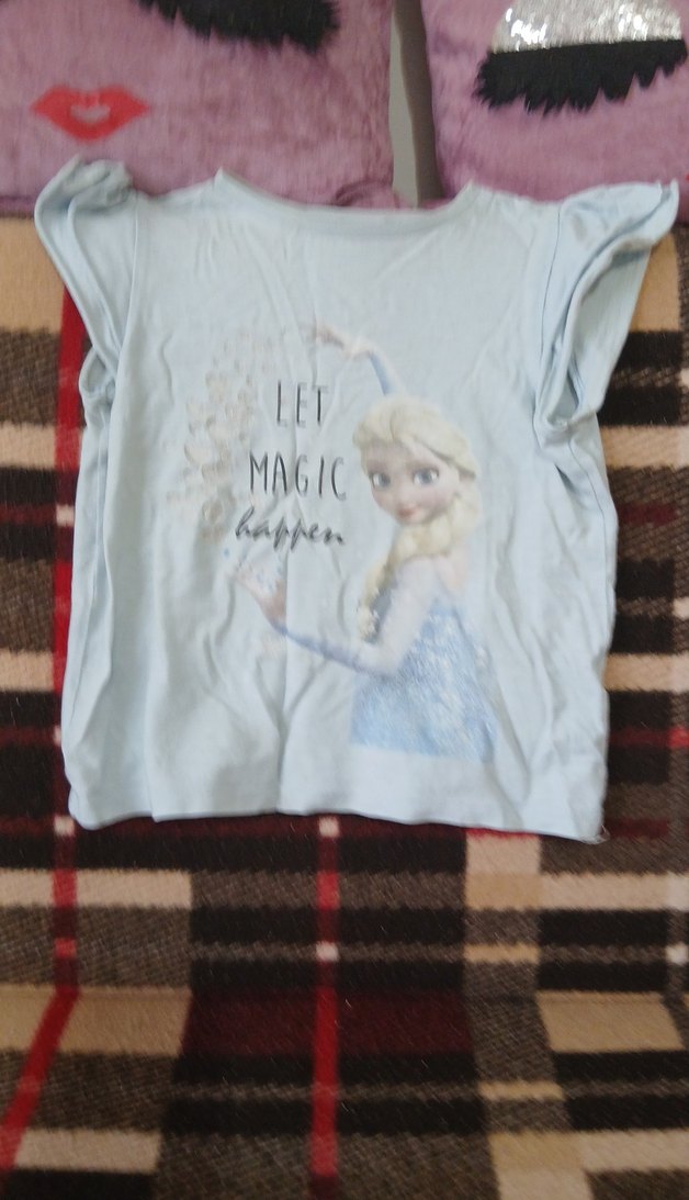 Bol kesim, pastel mavi kız çocuk tişörtü, yuvarlak yaka ve kısa kolludur. Üzerinde "LET MAGIC happen" yazılı baskı ve karakter resmi bulunur. Trend sokak stili için uygundur. ✨